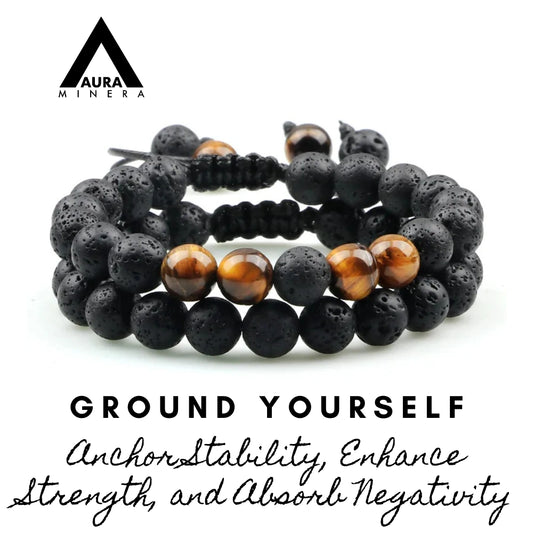 2 ajustable lava rocks bracelets – Natural energy & Stylish design